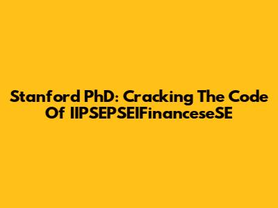 Stanford PhD: Cracking The Code Of IIPSEPSEIFinanceseSE