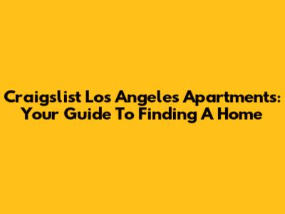 Craigslist Los Angeles Apartments: Your Guide To Finding A Home
