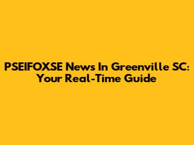 PSEIFOXSE News In Greenville SC: Your Real-Time Guide