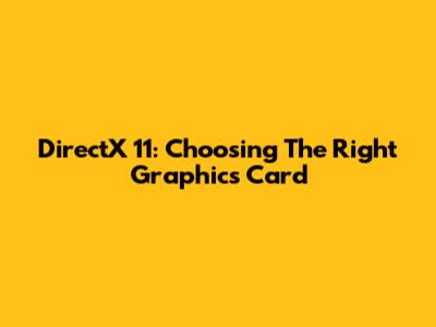 DirectX 11: Choosing The Right Graphics Card