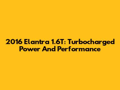 2016 Elantra 1.6T: Turbocharged Power And Performance