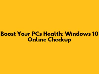 Boost Your PC's Health: Windows 10 Online Checkup