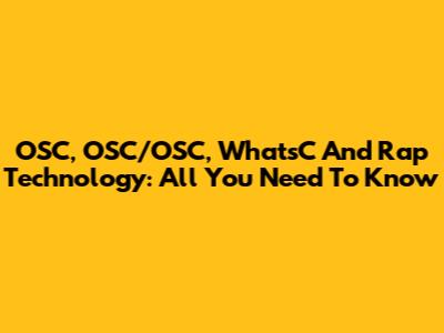OSC, OSC/OSC, WhatsC And Rap Technology: All You Need To Know