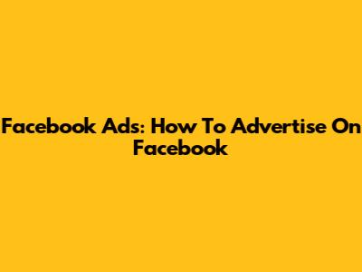 Facebook Ads: How To Advertise On Facebook