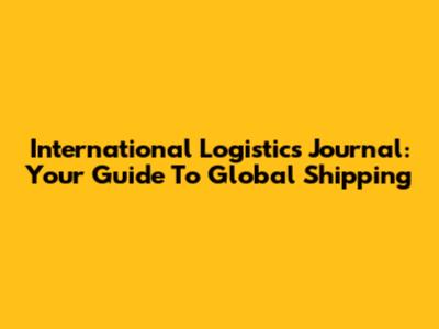 International Logistics Journal: Your Guide To Global Shipping