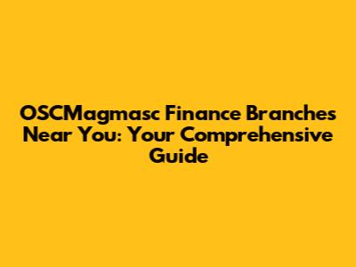 Hey everyone! Are you on the hunt for an OSCMagmasc finance branch near you? Maybe you're looking to open an account, get a loan, or just explore their services. Well, you've come to the right place! This guide is designed to help you easily locate OSCMagmasc branches, understand what they offer, and make the most of their financial services. We'll cover everything from finding the nearest branch to understanding the different types of services available. So, let's dive in and get you connected with your local OSCMagmasc branch! Finding a reliable financial institution is key to managing your finances effectively. OSCMagmasc offers a variety of services, making it a popular choice for many. Whether you're a seasoned investor or just starting out, knowing where to find their branches and what they offer is super important. We'll make sure you have all the info you need to navigate your financial journey with ease.