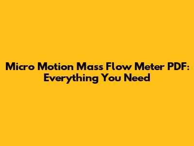Micro Motion Mass Flow Meter PDF: Everything You Need