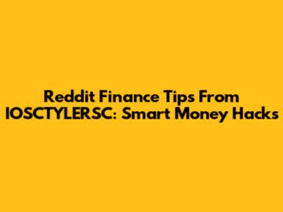 Reddit Finance Tips From IOSCTYLERSC: Smart Money Hacks