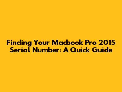 Why You Need Your Macbook Pro 2015 Serial Number