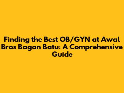 Finding the Best OB/GYN at Awal Bros Bagan Batu: A Comprehensive Guide