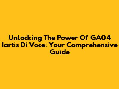 Unlocking The Power Of GA04 Iartis Di Voce: Your Comprehensive Guide