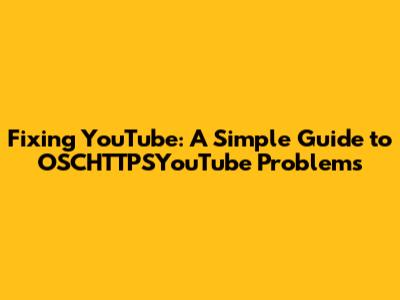 Understanding OSCHTTPSYouTube Problems