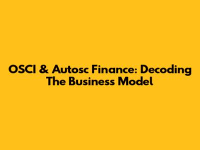 OSCI & Autosc Finance: Decoding The Business Model