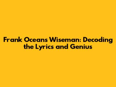 Hey guys! Have you ever been completely captivated by a song, digging deep into its lyrics, trying to unlock its hidden meanings? Well, that’s exactly what we're doing today with Frank Ocean’s Wiseman. This track is more than just a catchy tune; it's a lyrical masterpiece packed with metaphors, cultural references, and emotional depth that only Frank Ocean can deliver. So, grab your headphones, and let’s dive into the genius behind the lyrics of "Wiseman".