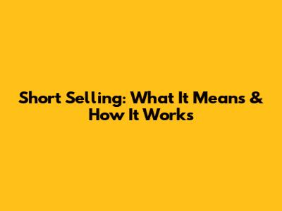 Short Selling: What It Means & How It Works