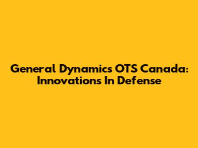 General Dynamics OTS Canada: Innovations In Defense