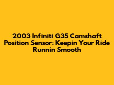 Alright guys, let's dive deep into a topic that might sound a bit technical but is super crucial for your 2003 Infiniti G35: the camshaft position sensor. This little guy plays a massive role in how your engine breathes and performs. When it starts acting up, your G35 can throw a fit, leading to all sorts of annoying problems. We're talking about rough idling, poor acceleration, and that dreaded check engine light flashing at you. Understanding what this sensor does, how to spot when it's failing, and what to do about it is key to keeping your beloved G35 purring like a kitten (or growling like a sports car, depending on your mood!). So, buckle up, and let's get this sorted!