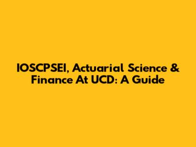 IOSCPSEI, Actuarial Science & Finance At UCD: A Guide