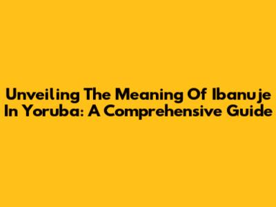 Unveiling The Meaning Of Ibanuje In Yoruba: A Comprehensive Guide