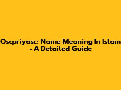 Oscpriyasc: Name Meaning In Islam - A Detailed Guide