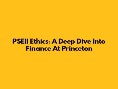 PSEII Ethics: A Deep Dive Into Finance At Princeton