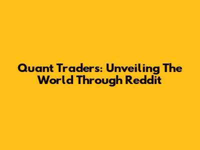 Quant Traders: Unveiling The World Through Reddit