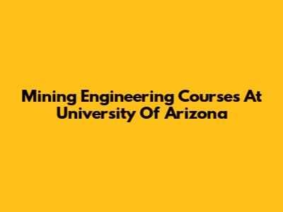 Mining Engineering Courses At University Of Arizona