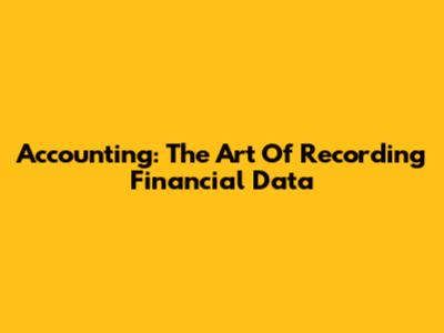 Accounting: The Art Of Recording Financial Data