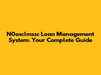 N0osclmssc Loan Management System: Your Complete Guide