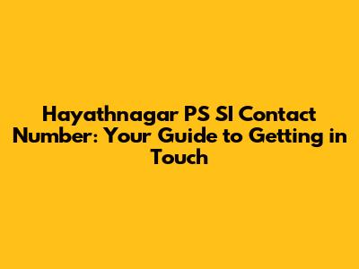 How to Find the Hayathnagar PS SI Contact Number