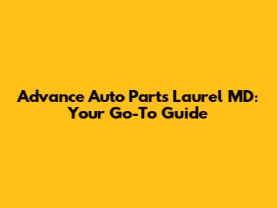 Advance Auto Parts Laurel MD: Your Go-To Guide