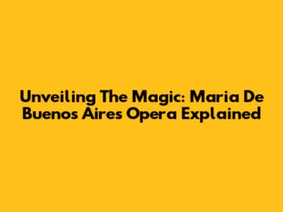 Unveiling The Magic: Maria De Buenos Aires Opera Explained