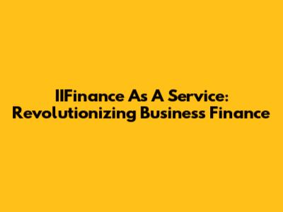 IIFinance As A Service: Revolutionizing Business Finance