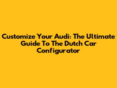 Customize Your Audi: The Ultimate Guide To The Dutch Car Configurator