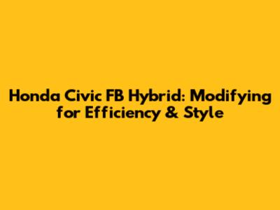 Modifying your Honda Civic FB Hybrid is an exciting way to personalize your ride and enhance its performance and appearance. By carefully selecting modifications that balance efficiency and style, you can create a Civic FB Hybrid that is both eco-friendly and eye-catching. Whether you're upgrading the suspension, adding a body kit, or switching to low rolling resistance tires, remember to prioritize quality and safety. With the right modifications, your Honda Civic FB Hybrid can be a true reflection of your personality and style.
