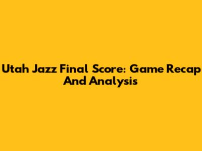 Utah Jazz Final Score: Game Recap And Analysis