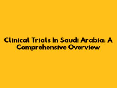 Clinical Trials In Saudi Arabia: A Comprehensive Overview
