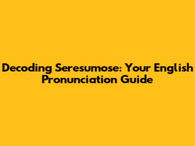 Decoding 'Seresumose': Your English Pronunciation Guide