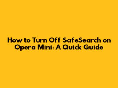 Step-by-Step Guide to Disabling SafeSearch on Opera Mini