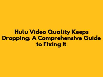 Troubleshooting Steps to Resolve Hulu Video Quality Drops