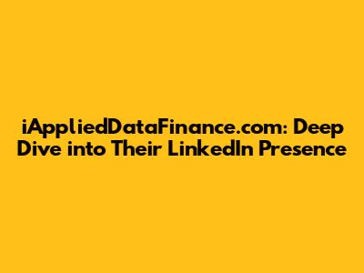 Let's explore iAppliedDataFinance.com and its LinkedIn presence. iAppliedDataFinance.com likely uses LinkedIn as a crucial platform for networking, showcasing expertise, attracting talent, and sharing industry insights. We'll delve into various aspects, such as their profile completeness, content strategy, engagement levels, and how they leverage LinkedIn to achieve their business objectives. Understanding these elements can provide valuable insights into their overall marketing and business development strategies. So, let's dive in and see what makes their LinkedIn presence tick!