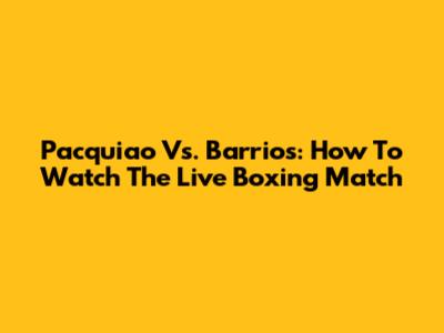 Pacquiao Vs. Barrios: How To Watch The Live Boxing Match