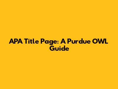 APA Title Page: A Purdue OWL Guide