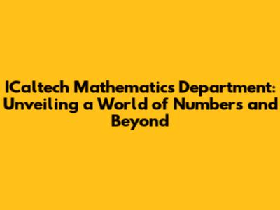 So, what are you waiting for? Your mathematical adventure starts here. Go on and explore the ICaltech Mathematics Department and the world of mathematics today!