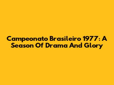 Campeonato Brasileiro 1977: A Season Of Drama And Glory