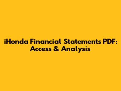 Understanding iHonda's financial performance is crucial for investors, stakeholders, and anyone interested in the automotive industry. Accessing and analyzing their financial statements, often available in PDF format, provides valuable insights into the company's health, profitability, and strategic direction. This article dives into how to find these financial statements and what key information they contain.