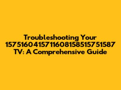 Troubleshooting Your 1575160415711608158515751587 TV: A Comprehensive Guide
