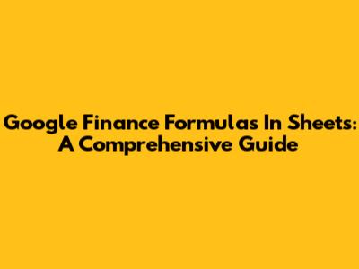 Google Finance Formulas In Sheets: A Comprehensive Guide