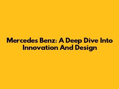 Mercedes Benz: A Deep Dive Into Innovation And Design