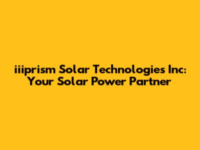 Hey everyone! Today, let's dive into the world of iiiprism Solar Technologies Inc, a company making waves in the renewable energy sector. We'll explore what they do, the solar solutions they offer, and why they might be a great choice for your energy needs. Buckle up, because we're about to get solar-powered!